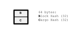 A cargo block doesn't exist forever: it's supposed to last at least as long as the timechain's advertised block-retention policy. When a user first submits a SHA-256 to be witnessed, they receive a receipt in the form of a crum, which is a tuple pairing the 32-byte hash, with an 8-byte UTC signifying the witness time. The crum is recorded in the cargo block associated with its witness time. (The block no. can be inferred from the crum's witness time.) Seconds later (or minutes, depending on the timechain's block-granularity) when the block-time has elapsed by a safe margin, the crums collected in the cargo block are built into a Merkle tree and its root hash is committed as the cargo hash in the timechain block at the same block no. From here on out, while the cargo block still exists, a user can retrieve a persistent hash proof asserting the crum's membership in the timechain block it belongs in.